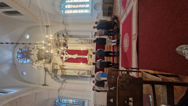 Vi deltok til søndagstjenesten deltok vi til siste tidebønn før den felles morgenmaten, som fant sted i hymnessis i St.